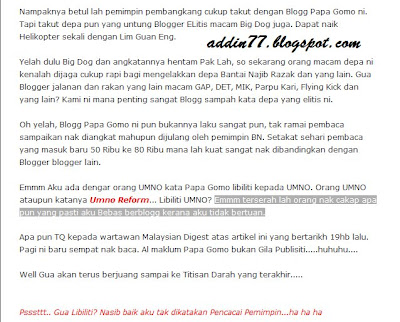 Selepas Perhimpunan Agong Umno yang lepas dan perkara-perkara bodoh yang dilakukan oleh pemimpin pakatan BN, saya berasa amat jelik dan ia telah pun menyebabkan saya tidak menghadap computer selama 10 hari.